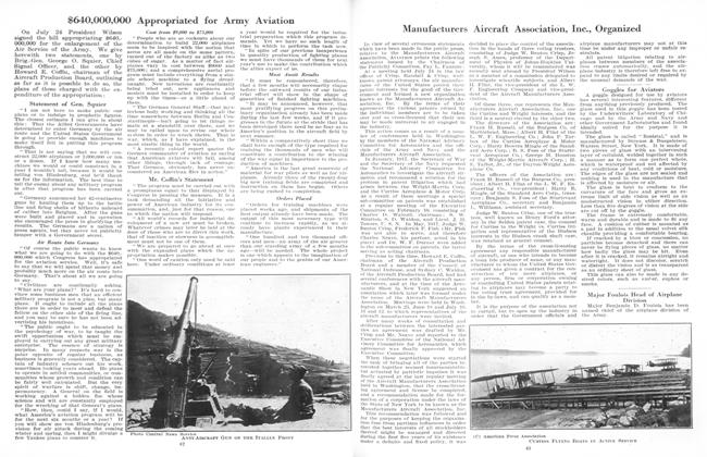 On July 24 President Wilson signed the bill appropriating $640,000,000 for the enlargement of the Air Service of the Army. We give herewith two statements, one by Brig.-Gen. George O. Squier, Chief Signal Officer, and the other by Howard E. Coffin, chairman of the Aircraft Production Board, outlining as far as it is possible to do so, the plans of those charged with the expenditure of the appropriation: