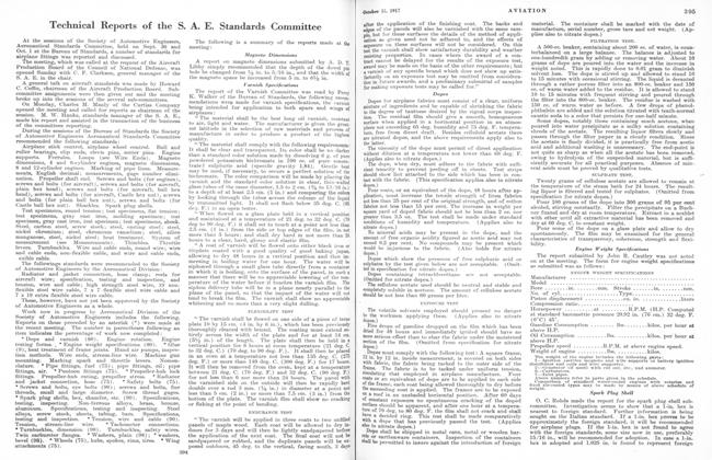 At the sessions of the Society of Automotive Engineers, Aeronautical Standards Committee, held on Sept. 30 and Oct. 1 at the Bureau of Standards, a number of standards for airplane fittings was reported and discussed. The meeting, which was called at the request of the Aircraft Production Board of the Council of National Defense, was opened Sunday with C. F. Clarkson, general manager of the S. A. E. in the chair.