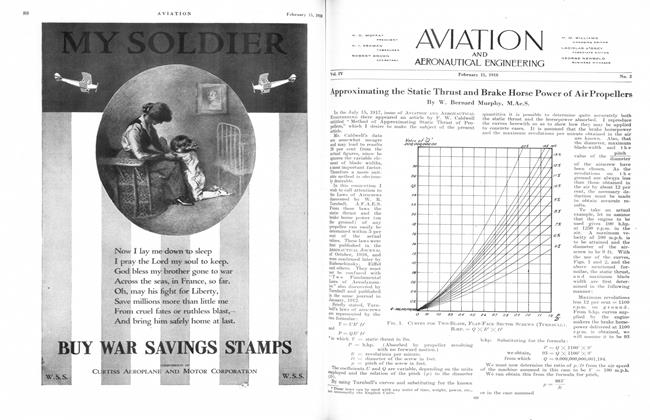 In the July 15, 1917, issue of AVIATION AND AERONAUTICAL ENGINEERING there appeared an article by F. W. Caldwell entitled “Method of Approximating Static Thrust of Propellers,” which I desire to make the subject of the present article. Mr. Caldwell’s data are somewhat meagre and may lead to results 20 per cent from the actual figures, since he ignores the variable element of blade widths, a most important factor.