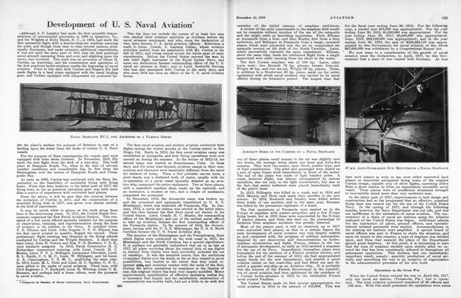 Although S. P. Langley had made the first scientific demonstrations of aeronautical principles in 1896 at Quantico, Va., and the Wrights at Kitty Hawk, N. C., in 1903, had made the first successful flight with a heavier-than-air machine carrying the pilot, and though from time to time several nations, principally European, had made extensive additional experiments, it was not until the early part of 1911 that the first practical naval aircraft operating from and over, and alighting upon the water, was invented.