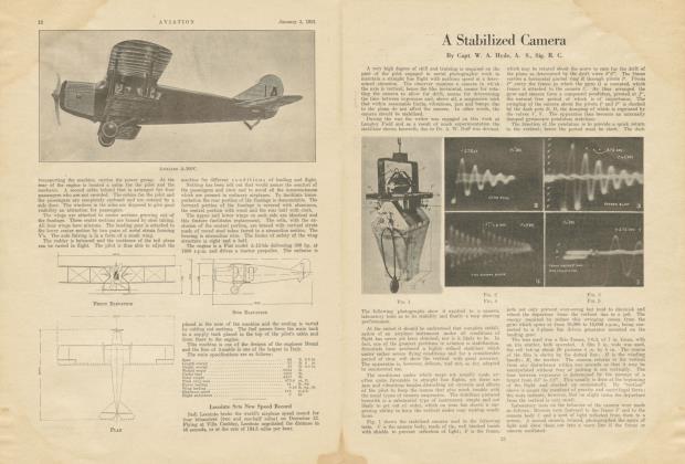 A very high degree of skill and training is required on the part of the pilot engaged in aerial photographic work to maintain a straight line flight with uniform speed at a determined elevation. The observer requires a camera in which the axis is vertical, hence the film horizontal, means for rotating the camera to allow for drift, means for determining the time between exposures and, above all, a suspension such that within reasonable limits, vibrations, jars and bumps due to the plane do not affect the camera.