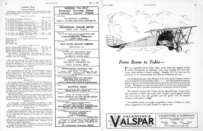 Following is a list of stations of the United States Navy where landing fields are at present available (Notice to Aviators No. 5, 1921.) : OPERATING STATIONS Type of field U. S. Naval Air Station, Rockaway, Long Island, N. Y.SP, —, LA.