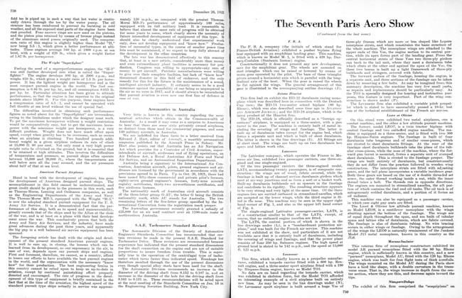 The F. B. A. company (the initials of which stand for Franco-British Aviation) exhibited a pusher biplane flying boat equipped with an amphibian landing gear. This machine, which is known as Model M. 1, is fitted with a 420 hp. Darracq-Coatalen (Sunbeam license) engine.