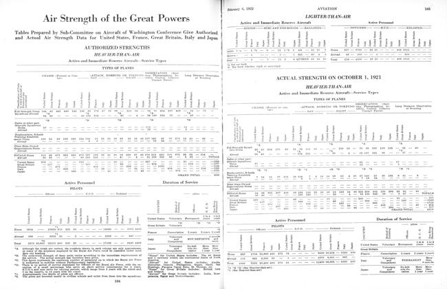 Tables Prepared by Sub-Committee on Aircraft of Washington Conference Give Authorized and Actual Air Strength Data for United States, France, Great Britain, Italy and Japan AUTHORIZED STRENGTHS HE A VIER-THAN-AIR Active and Immediate Reserve Aircraft—Service Type