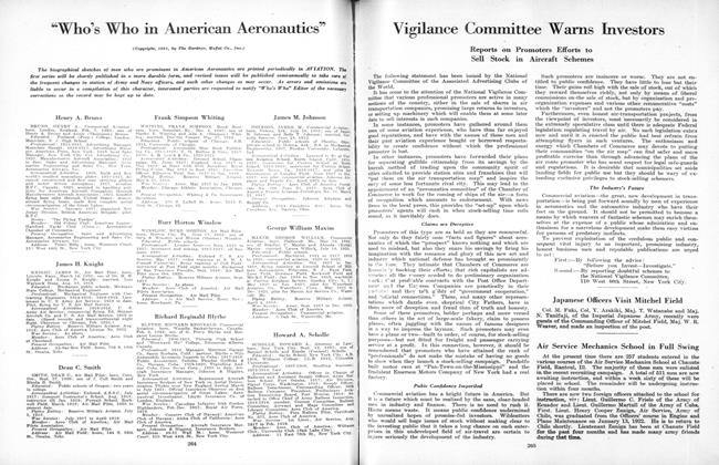 The biographical sketches of men who are prominent in American Aeronautics are printed periodically in AVIATION. The first series will be shortly published in a more durable form, and revised issues will be published semi-annually to take care of the frequent changes in station of Army and Navy officers, and such other changes as may occur.