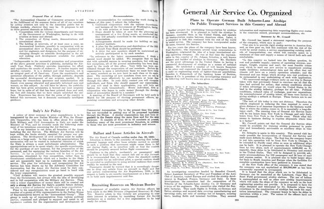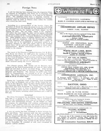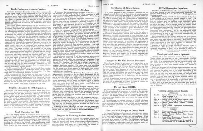 A call for bids has been received from the Argentine Director General of Navigation and Ports for 4 seaplanes, with two extra motors, spare parts, etc., to be used on the Bermejo River. The seaplanes must have a carrying capacity of 8 persons, seated, including the pilot, in addition to a mechanic.