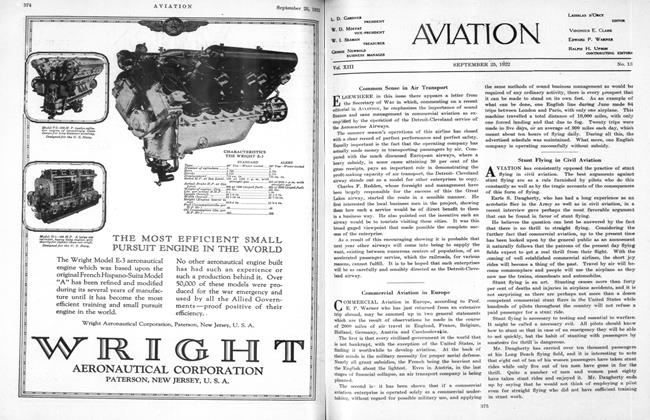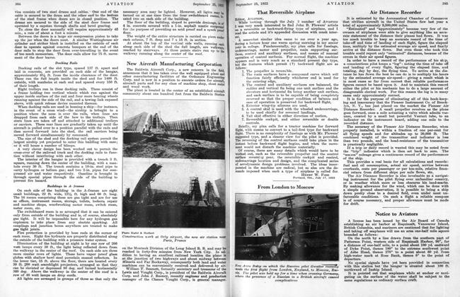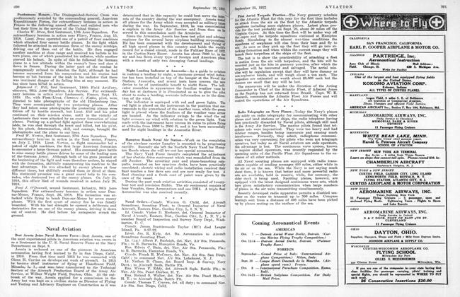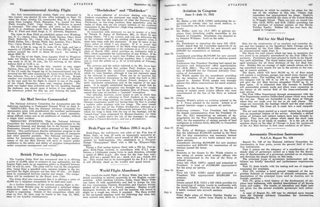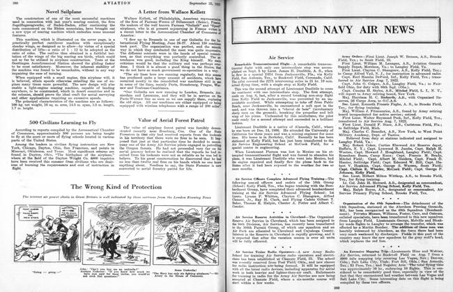 Remarkable Transcontinental Flight—A remarkable transcontinental flight with only one intermediate stop was accomplished on Sept. 5 by Lieut. James H. Doolittle, A. S., when he flew in a special DH4 from Jacksonville, Fla., via Kelly Field, San Antonio, Tex., to Rockwell Field, Coronado, Calif.