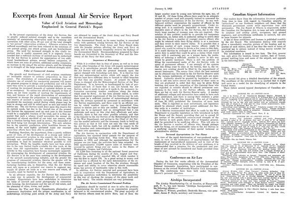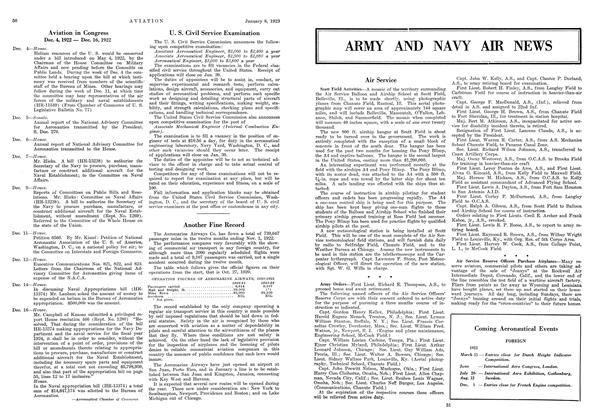Scott Field Activities—A mosaic of the territory surrounding the Air Service Balloon and Airship School at Scott Field, Belleville, III., is to be made shortly, using photographic planes from Chanute Field, Rantoul, III. This aerial photographic map will cover an area of approximately 144 square miles, and will include Belleville, Mascoutah, O’Fallon, Lebanon, Shiloh, and Summerfield.