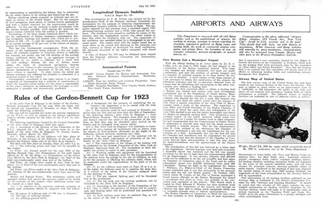 With the official landing in an Army plane by Lt. R. C. Moffat, A.S., on June 5, 1923, began the last chapter in the construction of the Boston municipal airport. Two large Army hangars are already completed, two more are under construction, and only the erection of private hangars and the transfer of material remains to be done before the airport will be finished.