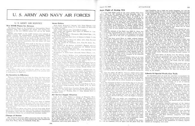 The Repair Depot at the Fairfield Air Intermediate Depot, Fairfield, Ohio, has completed the design and started construction on the new DH4B4 planes for use on the Model Airways. Shortly after flight on the model airways was reduced to regular schedule the inadaptability of the standard DH4B became apparent, and plans were instituted for redesigning this job to more nearly fit the needs of this airways work.