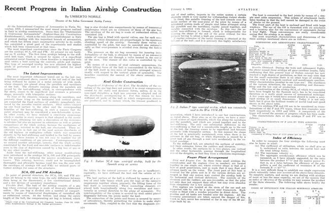 At the International Congress of Aeronautics in Paris, November, 1921, I summarized the most recent progress realized in Italy in airship construction. Since then the “Stabilimento di Costruzioni Aeronautiche” (Lighter-than-Air Construction Establishment)†, which is the only active establishment in Italy at present dealing with this important branch of aeronautics, and which has fifteen years constructive activity to its credit, has completed a great part of the experiments and studies which had been commenced at that time.