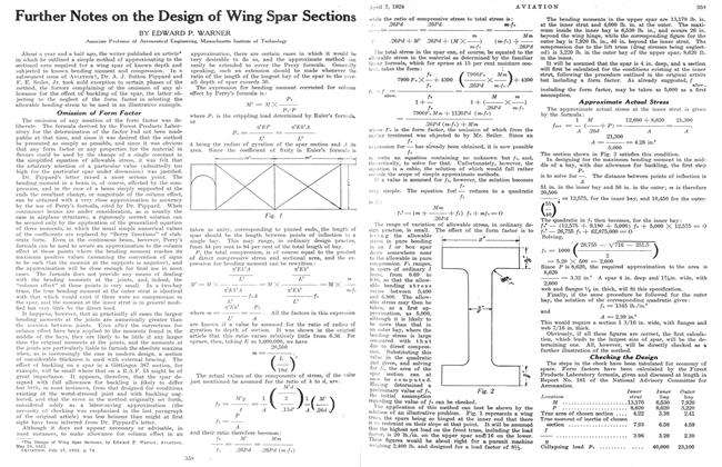 About a year and a half ago, the writer published an article* in which he outlined a simple method of approximating to the sectional area required for a wing spar of known depth and subjected to known bending moment and compression. In a subsequent issue of AVIATION †, Dr. A. J. Sutton Pippard and F. E. Seiler, Jr. took mild exception to certain phases of the method, the former complaining of the omission of any allowance for the effect of buckling of the spar, the latter objecting to the neglect of the form factor in selecting the allowable bending stress to be used in an illustrative example.