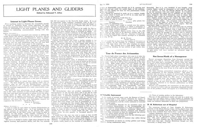 Were anything needed to illustrate the remarkable growth of interest in American flying circles regarding the light plane, the numerous letters AVIATION receives on this subject would be illuminating to the most skeptical. Below are reprinted two interesting communications dealing with this subject.