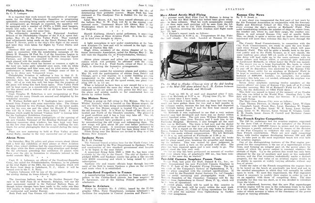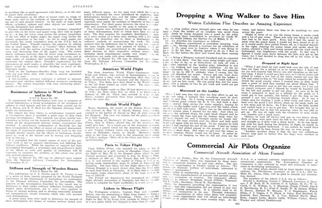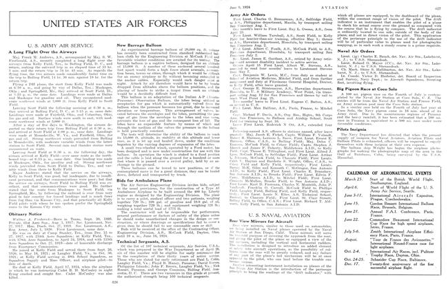 Maj. Frank M. Andrews, A.S., accompanied by Maj. S. W. FitzGerald, A.S., recently completed a long flight over the airways from Kelly Field, Tex., to Bolling Field, D. C., and return, making the outward trip in an elapsed time of 33 hr. 5 min. and the return trip in 34 hr. 45 min.