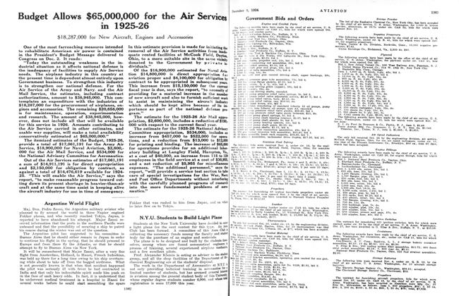 The following awards have been made by the chief of air service, U. S. Army, Washington, under cir CAS 17, bids for which were opened Oct. 28, for engine and combat parts: Bid. 1. Coulter-Curtiss Screw Co., Buffalo, N. Y. 2. C. H. Cowdrey Machine Co., Fitchburg, Mass.