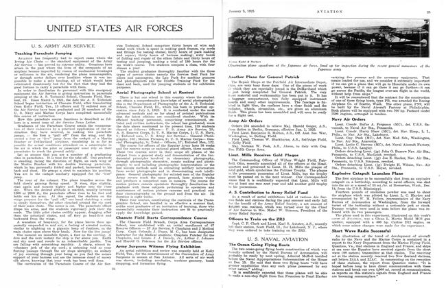 AVIATION has frequently had to report cases where the Irving Air Chute — the standard equipment of the Army Air Service — has proved its extreme utility. Occasions have arisen in the past where the lives of the occupants of an airplane became imperiled by reason of mechanical breakages or collisions in the air, rendering the plane unmanageable, or through motor failure over localities where it was impossible to make a safe landing, all of which would have culminated disastrously but for the fact that they had the good fortune to carry a parachute with them.