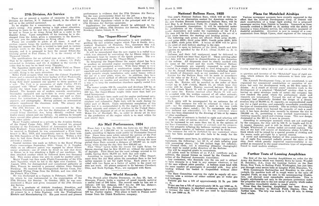 The First Pursuit Group, Air Service, stationed at Selfridge Field, Mich., started on Feb. 16 a series of realistic maneuvers to ascertain the possibility of aircraft operation in extreme cold weather. The Group moved out from its own field with pursuit planes and also camp equipment, including tents, stoves, bedding, supplies and spare parts transported by planes.