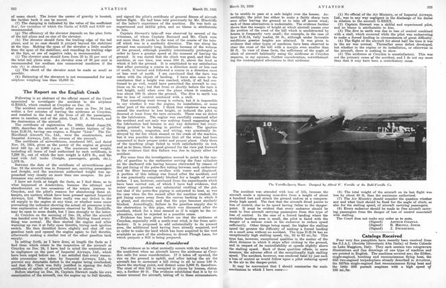 Following is an abstract of the official report of the Court appointed to investigate the accident to the airplane G-EBBX, which crashed at Croydon on Dec. 24. The accident occurred shortly after noon on Dec. 24 last, within a few minutes of leaving the airdrome at Croydon, and resulted in the loss of the lives of all the passengers, seven in number, and of the pilot, Capt. D. A. Stewart, and the destruction of the aircraft.
