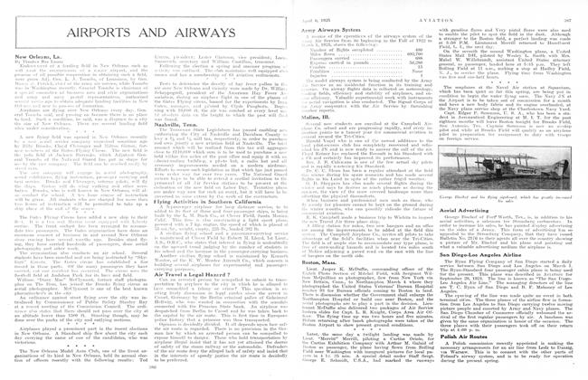 Endorsement of a landing field in New Orleans such as will meet the requirements of a major airport, and the promise of all possible cooperation in obtaining such a field, were given Adj. Gen. L. A. Toombs, of Louisiana, by Gen. Mason M. Patrick, chief of the army air service, while Toombs was in Washington recently.
