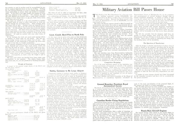 THE PLAN of the War Department for a five-year aviation building expansion, costing $150,000,000, was approved by the House on May 5 by a unanimous vote, after two hours of debate. Recently the House passed a bill for naval air development at a cost of $85,000,000, over the same length of time.