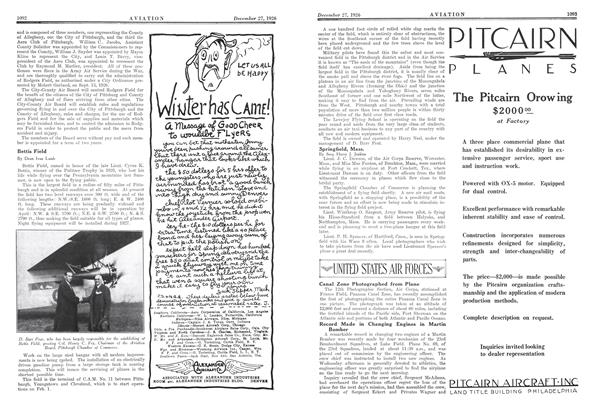 The 12th Photographic Section, Air Corps, stationed at France Field, Panama Canal Zone, has recently accomplished the feat of photographing the entire Panama Canal Zone in one picture. The photograph was taken at an altitude of 12,000 feet and covered a distance of about 60 miles, including the fortified islands of the Pacific side, Fort Sherman on the Atlantic side and portions of both Atlantic and Pacific Oceans.