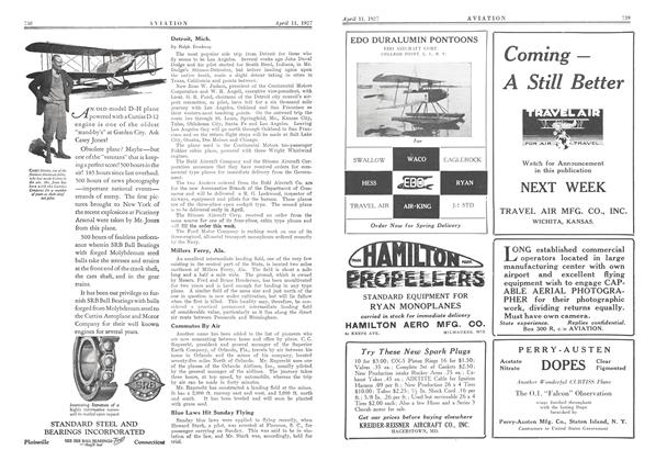 The most popular side trip from Detroit for those who fly seems to be Los Angeles. Several weeks ago John Duval Dodge and his pilot started for South Bend, Indiana, in Mr. Dodge’s Stinson-Detroiter, but before landing again upon the native heath, made a slight detour taking in cities in Texas, California and points between.