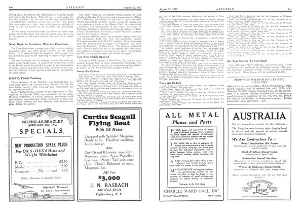 More than 1,700 Air Corps Reserve and National Guard officers, as well as R.O.T.C. students, will have attended the various Army aviation training camps when the 1927 summer instruction season, now at its height, closes in September. These courses of training give war-time pilots, who are no longer in the Regular Army, an opportunity to keep themselves in flying trim, and also teach civil and commercial fliers the principles of military aviation.