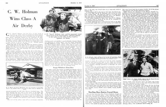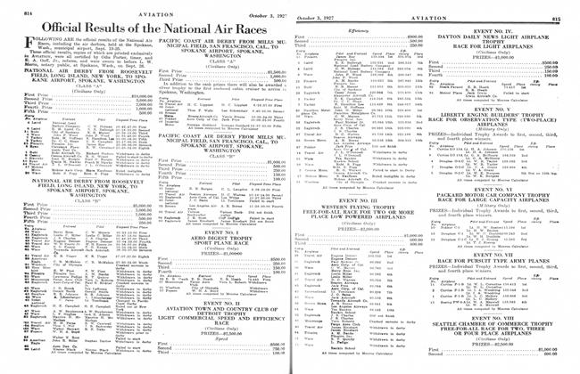 FOLLOWING ARE the official results of the National Air Races, including the air derbies, held at the Spokane, Wash., municipal airport, Sept. 19-25. These official results, copies of which are printed exclusively in AVIATION, were all certified by Odis Porter, timer, and E. A. Goff, Jr., referee, and were sworn to before L. W. Morin, notary public, at Spokane, Wash., on Sept. 26.