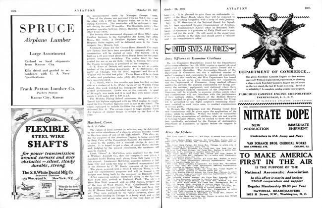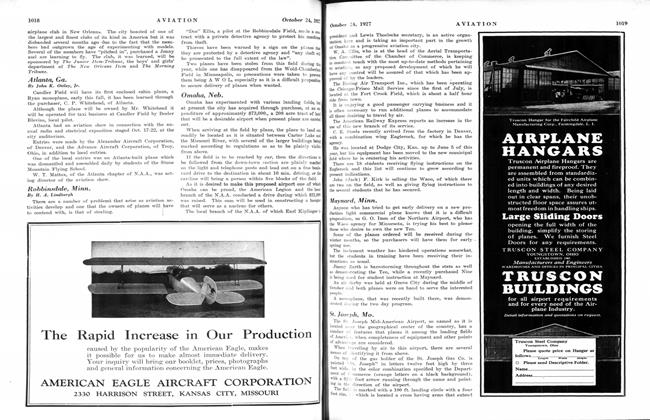 Hugh Watson, operator of Watson Airport and distributor for Travel Air planes, sold two 0X5 jobs recently. The buyers were Stockart and Barnett, of Ft. Wayne, Ind., and William E. Leedy, of Youngstown, Ohio. As Leedy purchased Watson’s demonstrator there was nothing left for him to do but order another 0X5 plane from the factory.