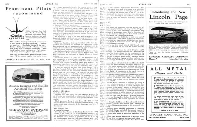 In its first month of passenger carrying service out of Chicago, the National Air Transport, Inc., handled 107 passengers, according to Col. Paul Henderson, vice-president and general manager, in a statement issued Oct. 1. Seventeen of this number flew between Chicago and New York and the other 90 travelled on the Chicago-Dallas route.