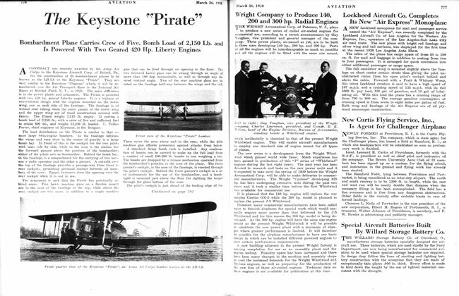 Bombardment Plane Carries Crew of Five, Bomb Load of 2,150 Lb. and Is Powered With Two Geared 420 Hp. Liberty Engines
