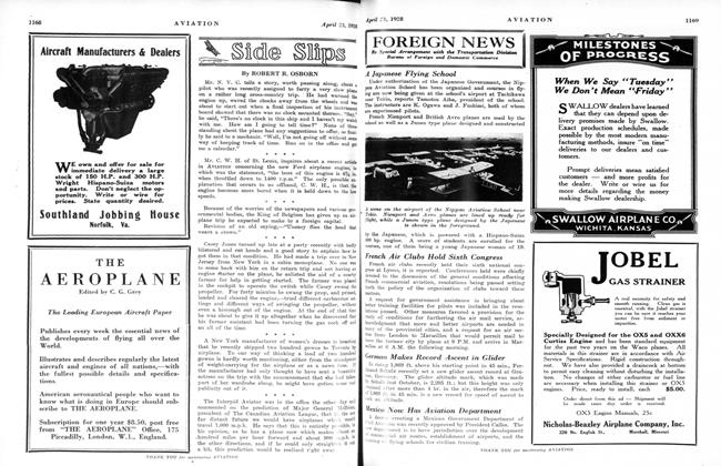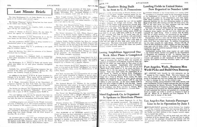 The Aero Development Co. of Cedar Rapids, Ia., is developing an air cooled, radial aircraft engine. The Boeing “Flamingo” biplane flying boat has been tested in the waters near Seattle, Wash. Miller Airplane Products, Los Angeles, Calif., is developing a 110 hp. air cooled engine.