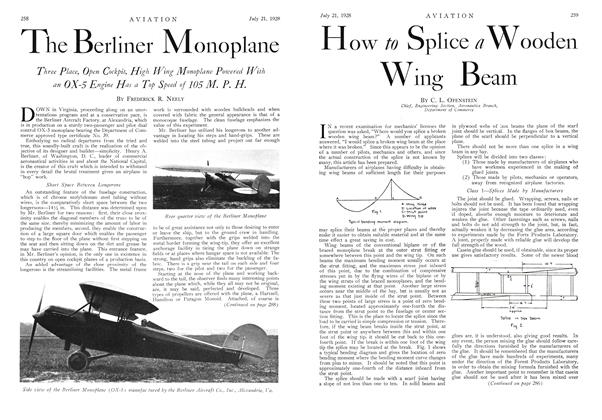 IN a recent examination for mechanics’ licenses the question was asked, “Where would you splice a broken wooden wing beam?” A number of applicants answered, “I would splice a broken wing beam at the place where it was broken.” Since this appears to be the opinion of a number of pilots, mechanics and others, and since the actual construction of the splice is not known by many, this article has been prepared.