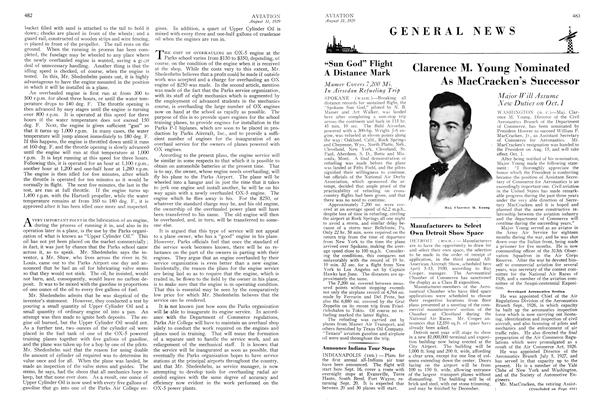 Bureau of Standards calibrations showed that Waldo Waterman, test pilot at the Los Angeles Metropolitan Airport, made an American altitude record for commercial planes of 20,820 ft. on July 27. A new all-metal mail monoplane, manufactured by the General Airplanes Corporation of Buffalo, was tested recently.