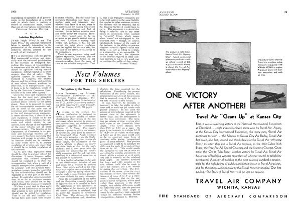 Aristocrats of the Air THE RECENT National Air Races were instructive as well as spectacular. One of the most impressive things about them, however, was a thing that most of the spectators barely noticed. Each day, while dozens of army and navy planes were performing hair-raising stunts in front of the crowded grandstands, with scores of other planes waiting, on the ground, for their turn to go up and make some new thrills, there was a steady stream of planes taking off and landing on a remote section of the airport, away from the crowds.