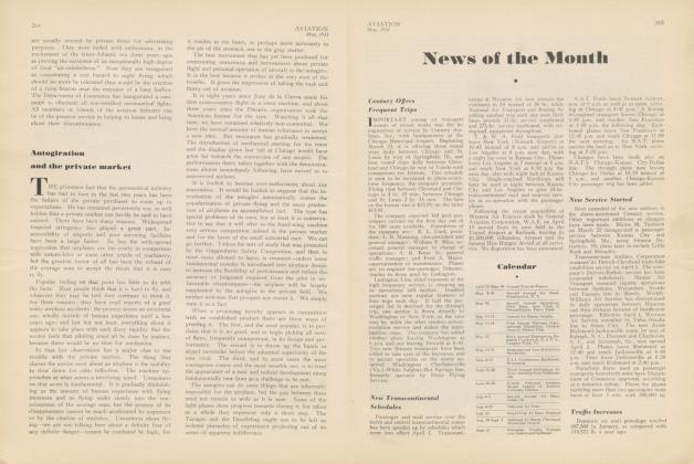 Century Offers Frequent Trips "IMPORTANT among air transport A events of recent weeks was the inauguration of service by Century Airlines, Inc., with headquarters at the Chicago Municipal Airport. Beginning March 23, it is offering three round trips daily between Chicago and St. Louis by way of Springfield, Ill., and four round trips daily between Cleveland and Chicago by way of Toledo with connections for Detroit.