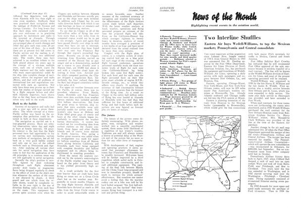 WHEN TWA decided to undertake an investigation of high altitude flying, two planes were available,—a single engine Northrop Gamma and “300”, the bimotored DC-1, first Douglas transport to be built. The performance of either plane at altitude is approximately the same, but obviously the cost of operating the Gamma would be far less than that for the DC-1.