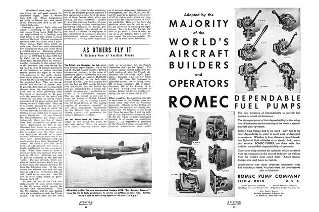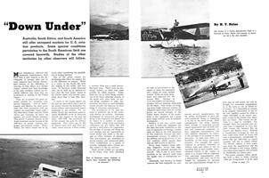 To BERMUDA AGAIN, this time on board Imperial Airways “Cavalier,”— and we must say that we have never experienced more comfortable flying in anybody’s airplane. Going aboard into the spacious cabin, with its high ceilings, large windows, promenade deck, and its exceedingly comfortable chairs, gives one the feeling that here is a real step toward the type of passenger accommodation that must be a part of every long-range ship of the future.
