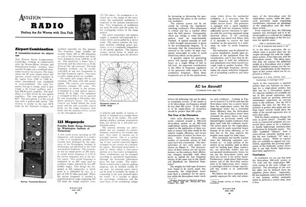 THE HARVEY RADIO LABORATORIES, Cambridge, working in collaboration with the Boston-Maine Airways and Pennsylvania-Central Airlines, have recently brought out a combined transmitter-receiver for airports. The transmitter has 50 watts output power and operates, crystal control, anywhere in the region from 2,500 to 7,000 kc., either unmodulated, tone modulated or voice-modulated.