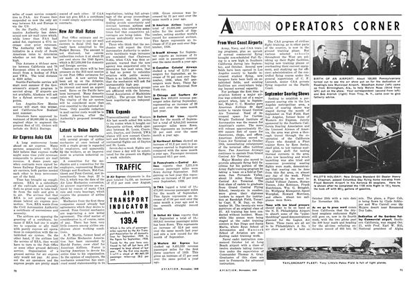August airline figures set alltime highs. The scheduled system will carry about 2,000,000 fares this calendar year, with smartest guessers setting a mark of 10,000,000 in the fifth year from now. Public acceptance of schedule service is being augmented by increasing military, student, private and fixed-base flying.