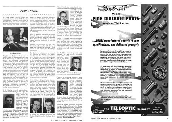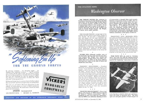 THE WRIGHT DINNER—The gathering in Washington honoring Orville Wright on the 40th anniversary of the historic flight at Kitty Hawk was an historic occasion. Leaders in every line of aeronautical endeavor were on hand. It was a brilliant affair and, as many of the guests remarked afterward, the hit of the evening was made by Orville Wright himself.