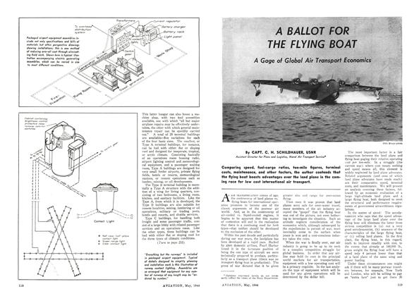 Comparing speed, fuel-cargo ratios, ton-mile figures, terminal costs, maintenance, and other factors, the author contends that the flying boat boasts advantages over the land plane in the coming race for low cost international air transport.