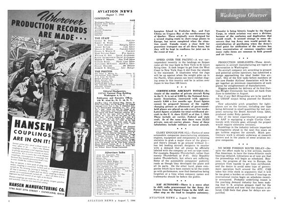 PRODUCTION LAGS—Top Army and Navy officers, Congressional leaders and production officials in Washington are making no effort to conceal their concern over a falling off in the output of needed war materials. Significantly, however, aircraft was not included in the list of vital items, despite the fact that last month’s production was a little below schedule—an even 8,000 planes.