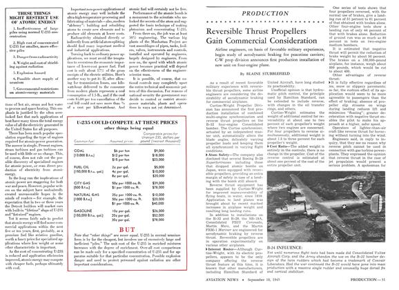 Five years ago the world learned that the atom of Uranium 235 had been split, releasing energy at the rate of about 11,400,000 kilowatt-hours per pound. The whole amount tested was less than the head of a pin, but there was no escaping the possibility that heaters, engines, turbines, jets and explosives could be powered by atomic energy.