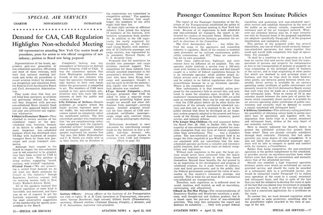 The report of the Passenger Committee of the Institute of Air Transportation established the policy of the Institute’s first national meeting in New York last week. Because of its importance to both scheduled and non-scheduled air transport, the report is abstracted for readers of AVIATION NEWS. Hobart Cook, president of Transmarine Airways, presented the report as chairman of the Committee.