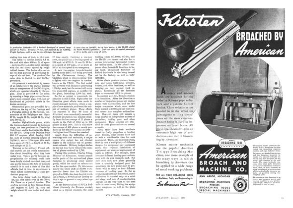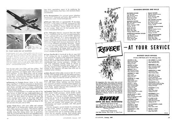 Developed to reduce fire hazard and lighten weight of planes, new aircraft wire, known as “Neolay”, announced by United States Rubber Co., New York City, is reported to be 30% lighter than conventional electrical wire. Insulation, said to be flameproof, consists of a layer of glass fiber to insure circuit integrity and a fire-resistant synthetic rubber applied by a special dipping process.