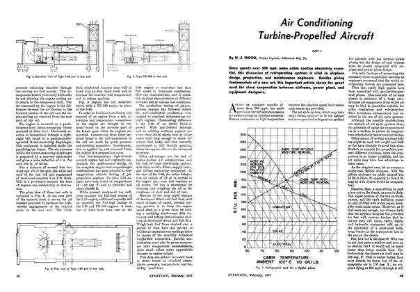 Since speeds over 500 mph. make cabin cooling absolutely essential, this discussion of refrigerating systems is vital to airplane design, production, and maintenance engineers. Besides giving fundamentals of a new art, this important article shows the great need for close cooperation between airframe, power plant, and equipment designers.