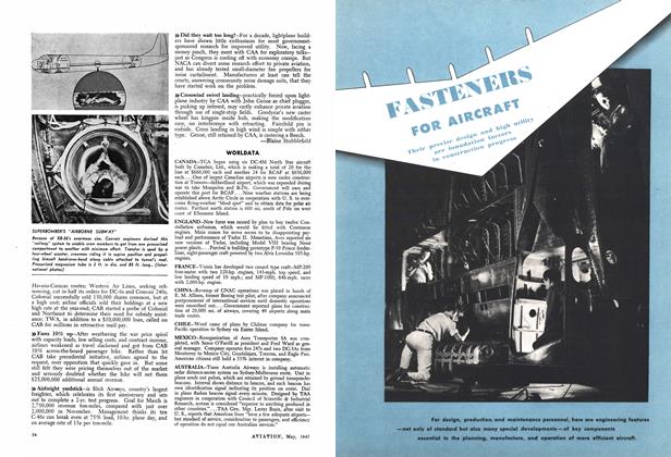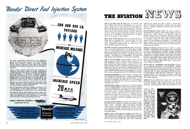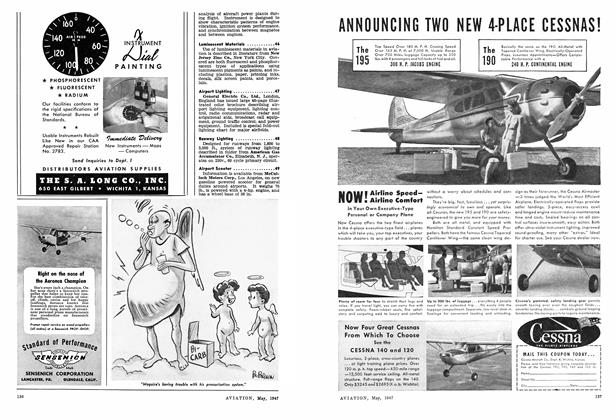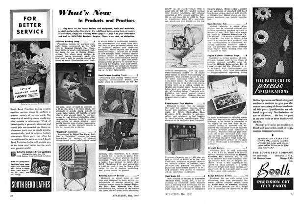 Airplane Reading Lamp.............1 Peacetime version of wartime gun-sight lamp, announced as No. G-E 1385 by General Electric Co., Cleveland, Ohio, is small, reflectorized reading lamp for use in Boeing Strato-cruiser. For about same wattage as aircraft lamps previously used, this 20w. unit is said to provide almost ten times as much illumination over reading area.