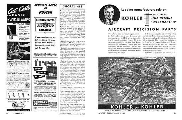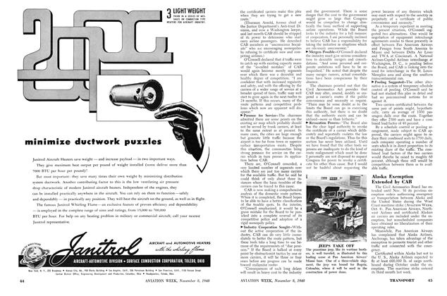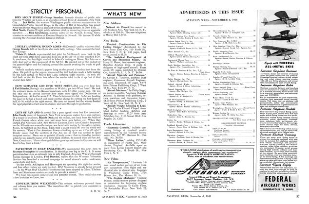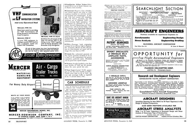 American Overseas—Late last month marked the third anniversary of the first scheduled commercial landplane service to Europe. During the past three years AOA has carried 179,670 passengers, 7,232,490 lb. of freight and 2,050,800 lb. of mail.