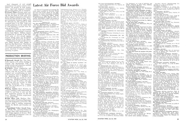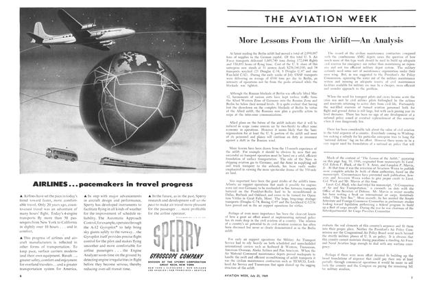 At latest reading the Berlin airlift had moved a total of 2,098,887 tons of supplies to the German capital. Of this total U. S. Air Force transports delivered 1,609,749 tons during 172,044 flights and 530,891 hours of flying time. Cost of the U. S. share of this enterprise now stands at 31 airmen dead; $238,140,100; and 34 transports wrecked (25 Douglas C-54, 8 Douglas C-47 and one Fairchild C-82).